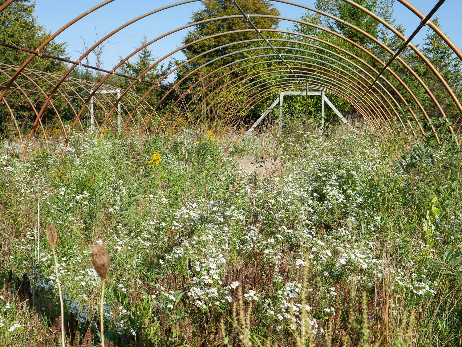 One last shot from visiting Intrinsic Perennials. I loved how nature had reclaimed some of the Quonset huts at the back of the property. Sure, they could be mowed, but these asters and various other wildflowers help to support life at the nursery.