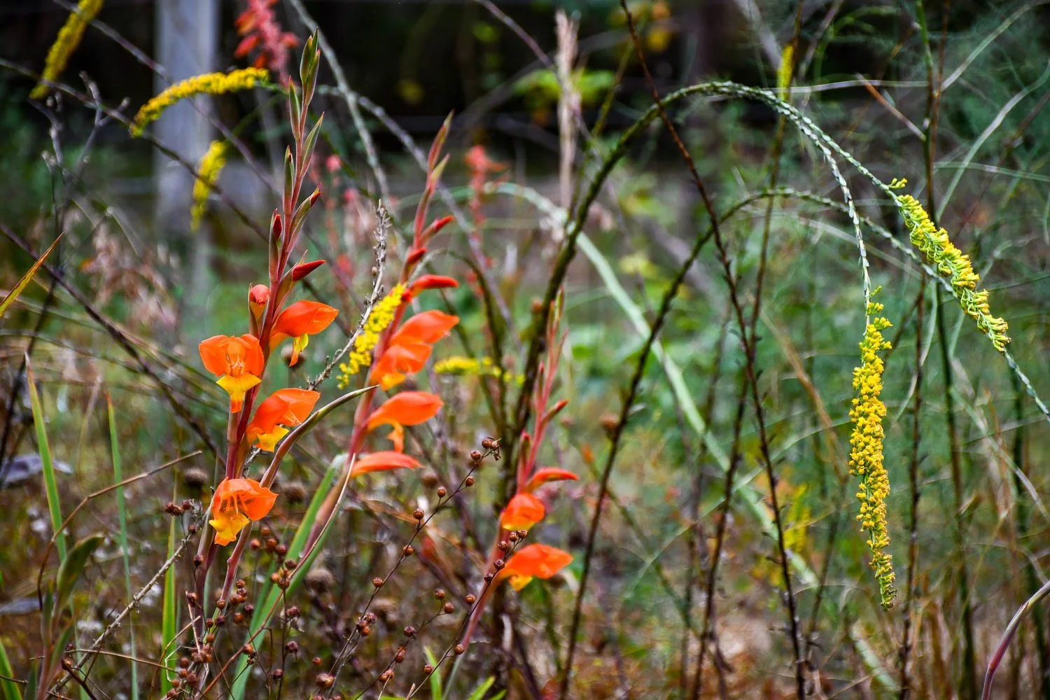 I have other plants in holding that can play off this warm color scheme. I have Cuphea micropetala (candy corn cuphea), Gladiolus × dalenii ‘Halloweenie’ (sword lily, header image), and Solidago stricta (header image). They will be moving to some of the orchard beds next year.