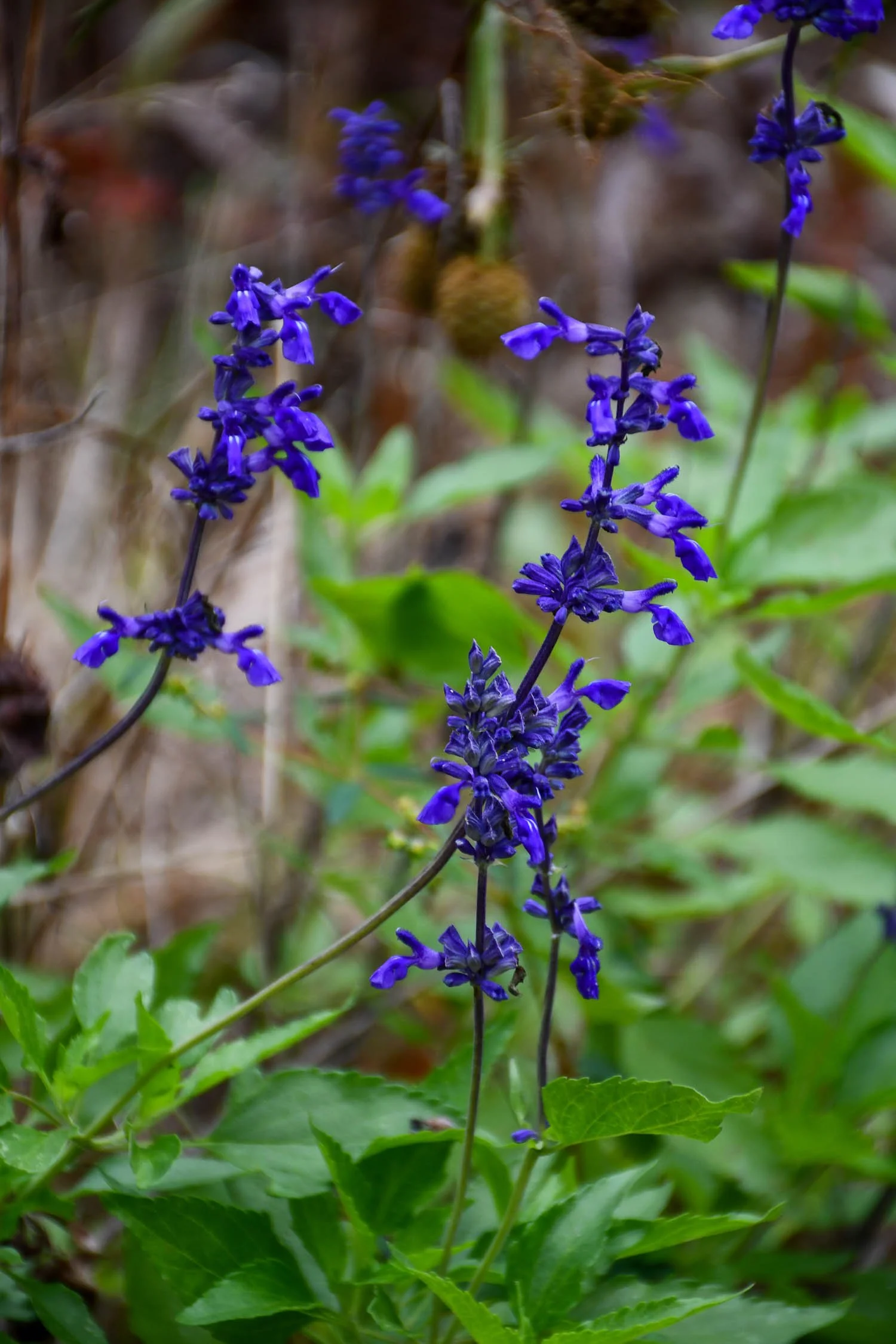 The cobalt blue flowers on Salvia farinacea ‘Henry Duelberg’ are brilliantly colored against dying vegetation.