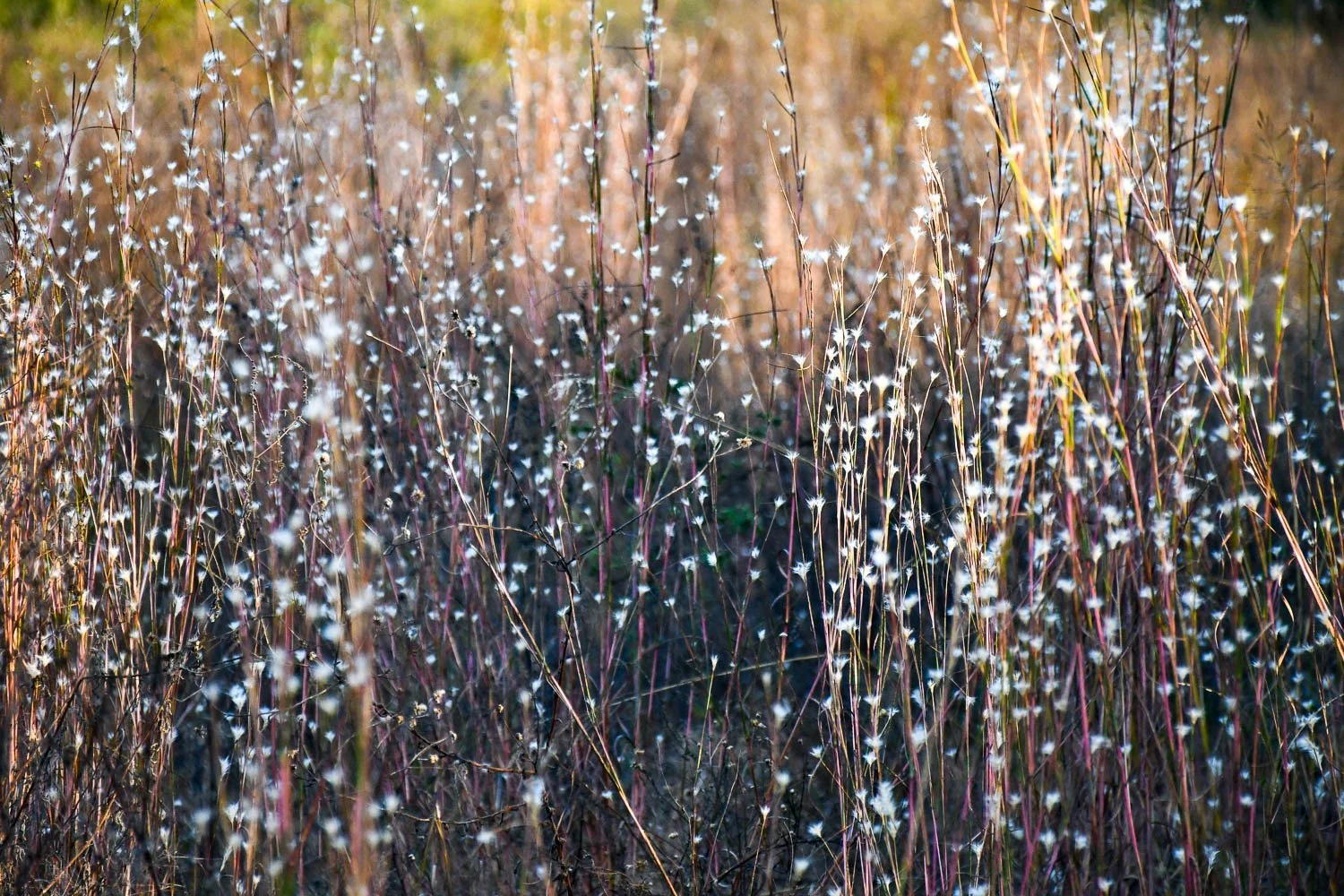 The frilly pappi of Andropogon ternarius (split-beard bluestem) glow in the late afternoon light.